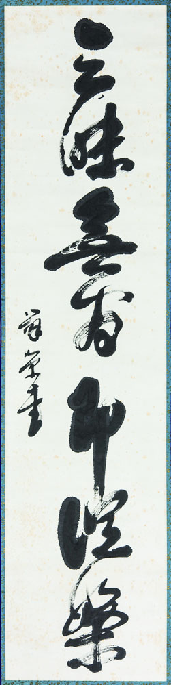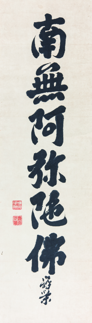 〈解説〉出典は善導大師『往生礼讃』である。弁栄上人の書簡に「三昧無為即涅槃とは善導大師の讃文である。さすが極楽の道の先達である善導大師はこの真理を悟り教示してくださっている。三昧というのは念仏三昧のこと。一心に阿弥陀如来を念じて我を離れたときは我は阿弥陀如来となる。もし念仏三昧の境地を体得すれば、絶対なる阿弥陀如来となり、宇宙全体すべては阿弥陀如来であると悟るのである。これを三昧の境地という。阿弥陀如来の外のものは一切ないことを悟れば阿弥陀如来は涅槃界の主であることを悟る。」(『たより』上巻18頁)とある。念仏三昧の実践をすればすべてが阿弥陀如来であるとの三昧の境地に至る。その三昧の修行へと誘引している書である。