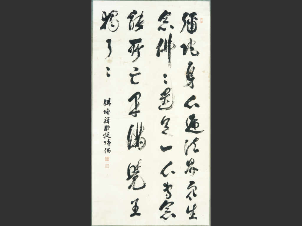 弥陀身心遍法界(みだしんじんへんほっかい) 衆生念仏仏還念(しゅじょうねんぶつぶつげんねん) 一心専念能所亡(いっしんせんねんのうしょもう) 果満覚王独了々(かまんかくおうどくりょうりょう)