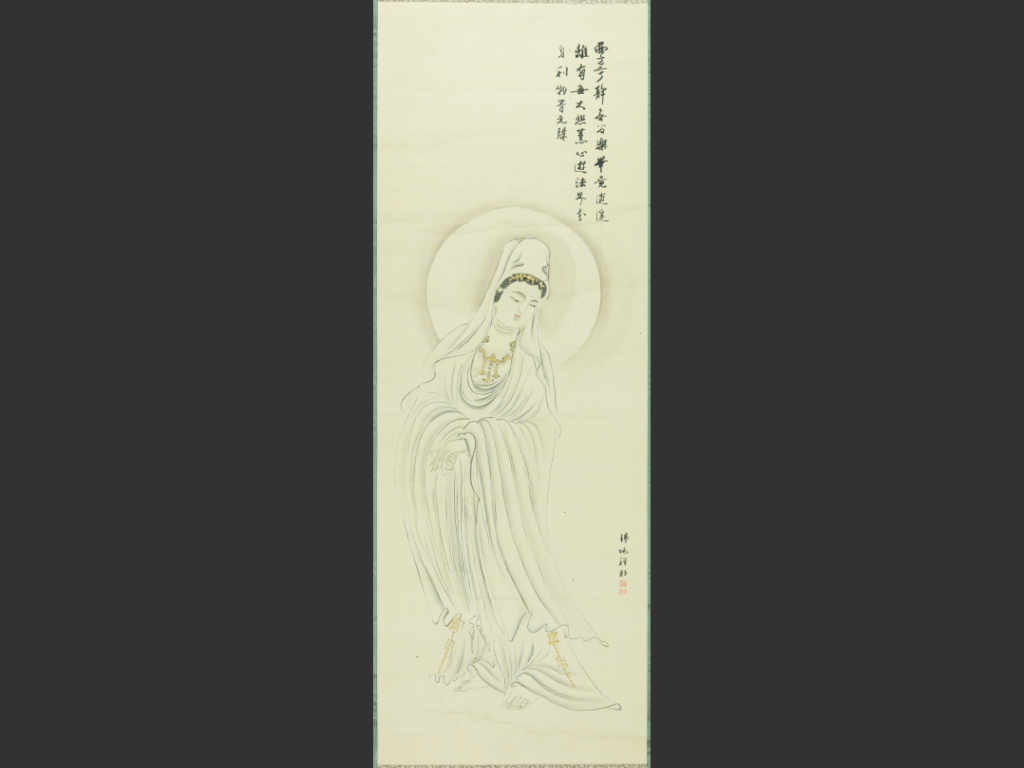 また、御縁の方に仏画を差し上げ、日々空いた時間や夜遅くまで、御縁の方のため、仏画を描かれていました。ある時、苦悩に満ちた女性に観音さまを差し上げたことがありました。その数年後、その女性と再会し、その女性の光明中の明るい表情に接し、「差し上げた観音さまの様に麗しくなられましたね」と共々に喜ばれたのでした。その仏画の数、数千に止まらず、紙面絹面に現れた数万点の仏・菩薩が、聖者ご遷化の今現在も、そしてこれからも各地で布教し光明中へと誘引していくのです。